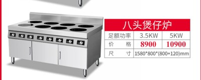 商用八头电磁煲仔炉包括:八头商用电磁煲仔炉、电磁八头矮脚煲仔炉、八头商用电磁煲仔炉、具体规格型号见下表: